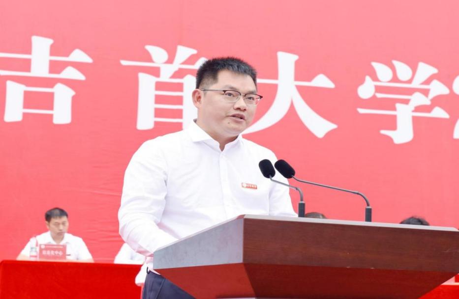 在典礼上,谈凯以《从“风雨湖”畔到世界舞台“硬核生存”秘籍》为题,结合自身从吉首大学走向国际舞台的成长历程,为全体新生带来一场富有启迪意义的入学教育。他围绕三点体会展开分享:一是强调大学是构建思维体系的关键阶段,鼓励同学们珍惜在“风雨湖”畔静心学习的时光,广泛阅读、勤于思考,建立起坚实的认知框架;二是结合自身从数学专业跨界到国际制造与商业领域的经历,指出“能力跨界”是未来竞争力的核心,勉励同学们主动打破学科壁垒,培养“T型能力结构”;三是立足国家发展大势,启发同学们关注中国创新与全球合作,理解“中国智造”与“一带一路”倡议背后的时代机遇,拓展全球视野与家国格局。