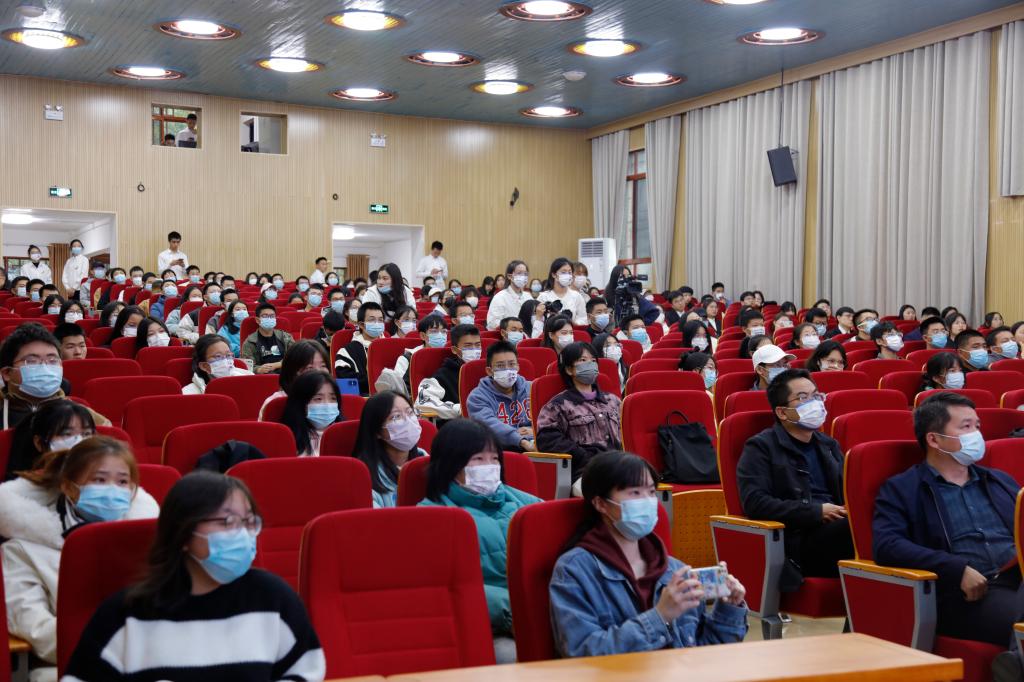 颁奖典礼上放映了获奖学生个人的先进事迹,为在场同学们分享了他们获奖背后的故事。“自强不息奖”获得者陈智恒从小和祖父祖母相依为命,纵使身患疾病,历经多次手术,也始终自强不息,艰苦创业,用实际行动改善家庭经济情况;“公益行动奖”获得者贾辉四年义务献血小板42次,累计救助37位患者,诠释了“每一个献血者都是英雄”的真谛,彰显了新时代大学生的亮丽青春色彩;“道德风尚奖”获得者刘夏身残志坚,身体虽被轮椅束缚,却不向命运妥协,以厚德载物的精神感染着身边的每一个人;“学术科研奖”获得者李懋志在学术,在竞赛中迎难而上,攻坚克难,勇攀科研高峰;“孝心大学生”获得者徐东等人敢于担当,用自己的孝行为家人遮风挡雨,为民族延续孝悌。