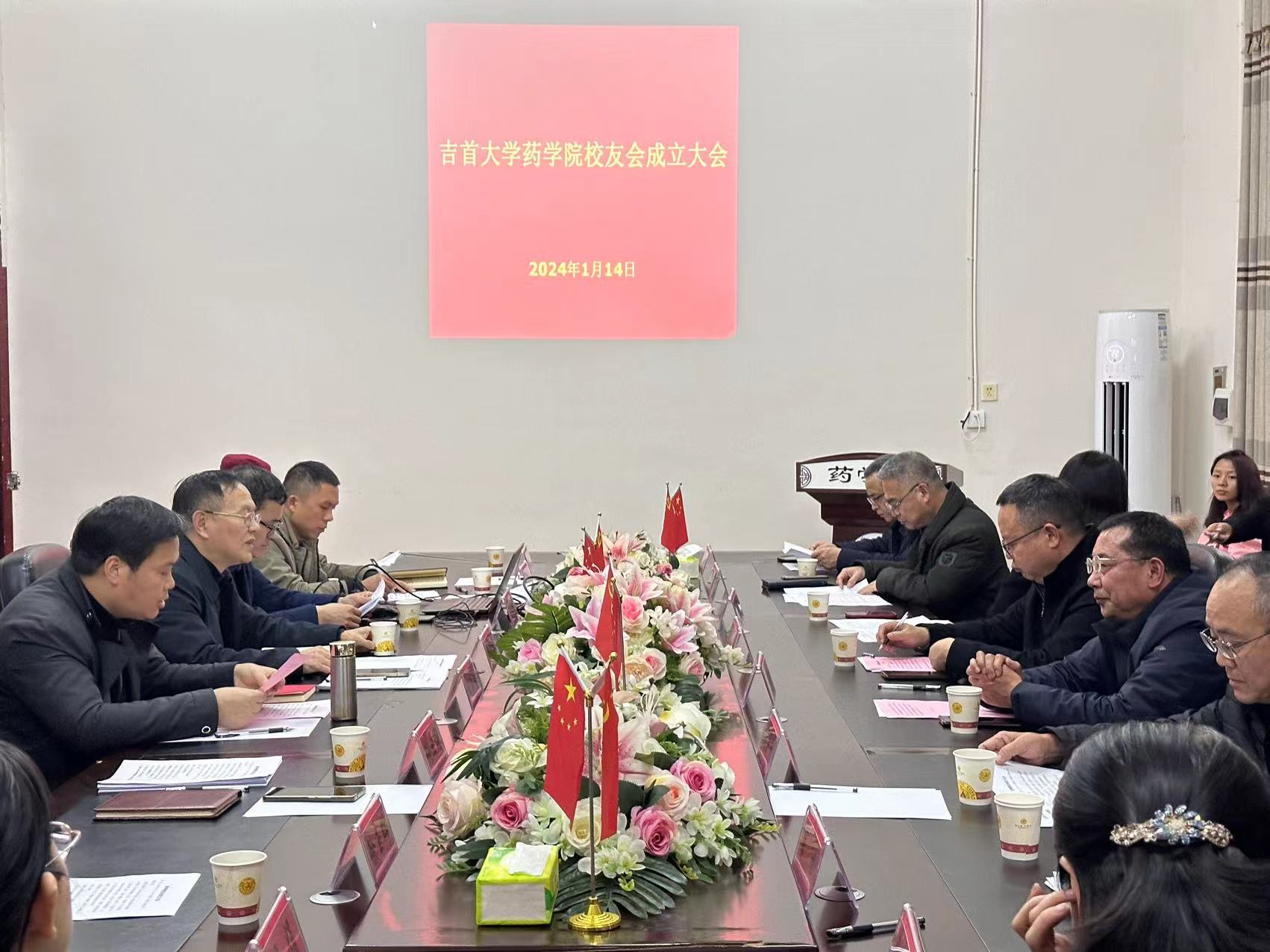 本网讯(通讯员 姜梦遥)1月14日下午,吉首大学药学院校友分会成立大会在药学院办公楼会议室召开。校党委委员、副校长周华忠,校友会会长佘佐辰、副秘书长龚静,药学院领导班子,校友代表、师生代表参加本次大会。会议由药学院党委副书记张勇华主持。